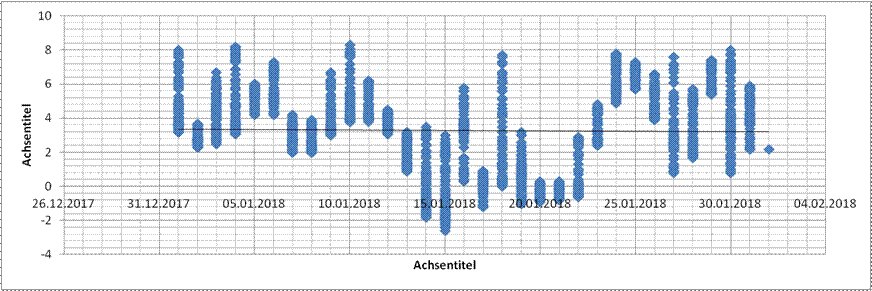 Temperaturverlauf/-verteilung Januar 2018 ==> Durchschnittstemperatur: 3,2°C (2017: -2,6°C, 2016: 1,0°C, 2015: 0,7°C, 2014: 2,4°C, 2013: -0,6°C, 2012: 1,2°C, 2011: 0,3°C, 2010: -3,8°C, 2009: -2,5°C, 2008: 2,5°C, 2007: 3,4°C, 2006: -2,0°C, 2005: 0,9°C, 2004: 0,1°C)