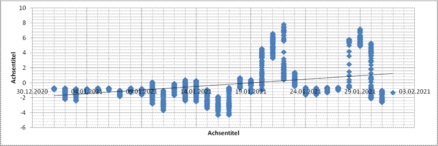 Temperaturverlauf/-verteilung Januar 2021 ==> Durchschnittstemperatur: -0,3°C (2020: 1,7°C, 2019: -1.1°C, 2018: 3,2°C, 2017: -2,6°C, 2016: 1,0°C, 2015: 0,7°C, 2014: 2,4°C, 2013: -0,6°C, 2012: 1,2°C, 2011: 0,3°C, 2010: -3,8°C, 2009: -2,5°C, 2008: 2,5°C, 2007: 3,4°C, 2006: -2,0°C, 2005: 0,9°C, 2004: 0,1°C)