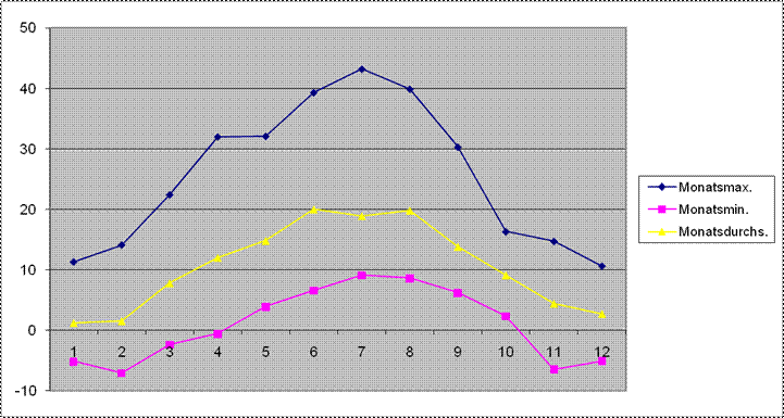 Diagramm Vergleich Durchschnittstemperaturen der letzten Jahre