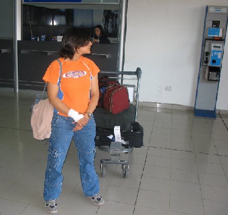 Unsere Bedenken, dass wir evtl. unsere Abholer verpassen würden waren also völlig unbegründet, da wir die einzigen Passagiere waren, die überhaupt abgeholt wurden. Deutsche Touristen gibt es dort wohl wirklich sehr selten. Die Formalitäten waren sehr einfach. Alle anderen Passagiere und vor allem das Gepäck wurden sehr genau kontrolliert, während wir einfach durch die Kontrollen gehen durften. Der Chef der Zollbeamten hat uns persönlich zum Ausgang geführt. Auch unsere Befürchtungen, dass ggf. Gepäckstücke verloren gehen, oder Teile davon entwendet würden, waren völlig unbegründet.