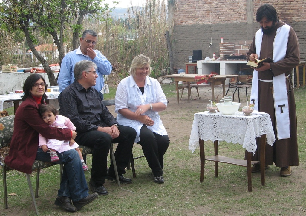 Kurzerhand wurde ein kleiner Altar im Hof des Hauses aufgebaut und alle Teilnehmer der Feierlichkeit haben sich darum versammelt. Lediglich das Wetter wollte nicht so recht mitspielen. Natürlich wurde für die Feierlichkeit ein umfangreiches Asado vorbereitet. Der Pastor wurde mit dem Auto abgeholt und der Gottesdienst konnte beginnen. Der Pastor war noch relativ jung und sah aus wie Jesus Christus persönlich (siehe Bild).
